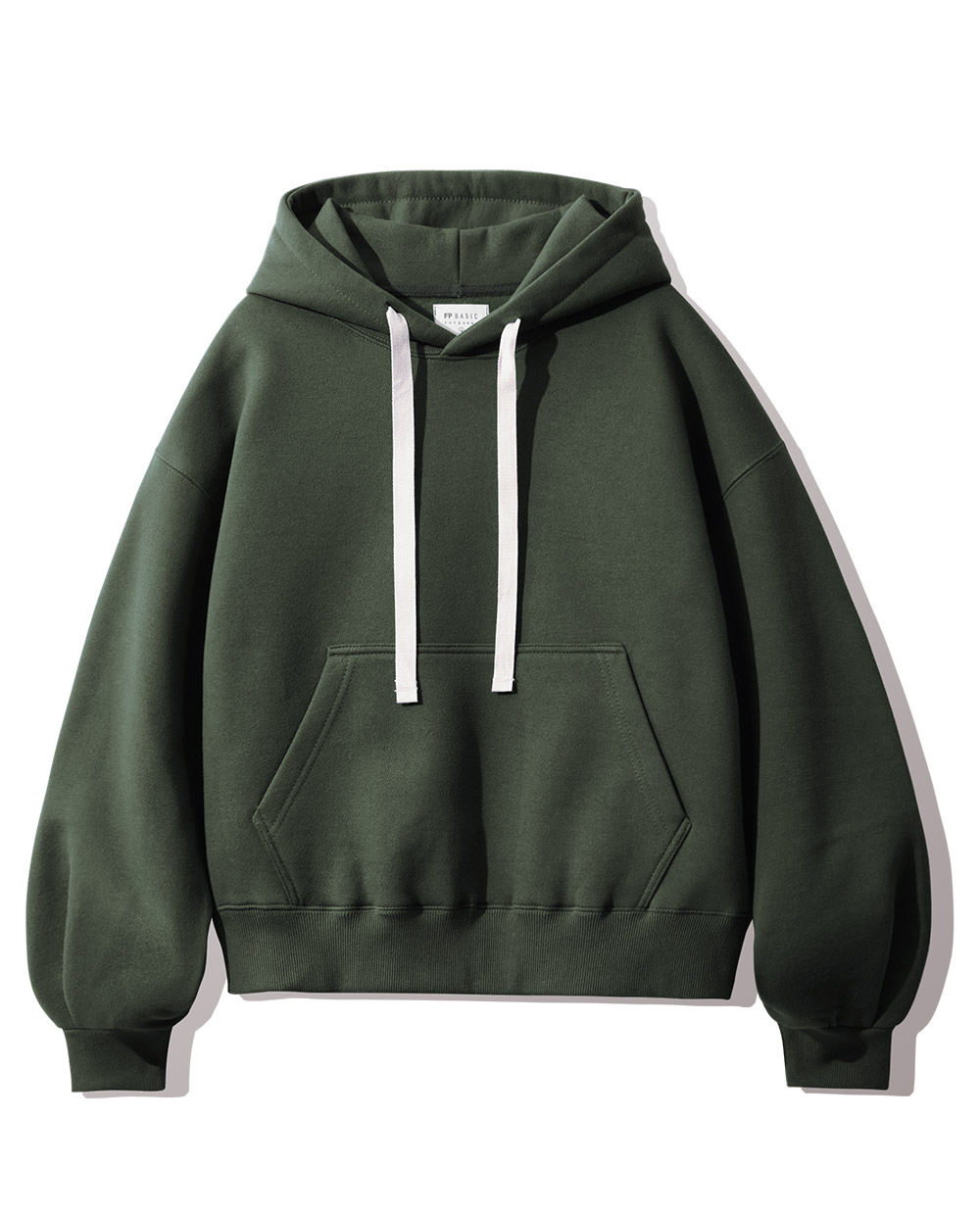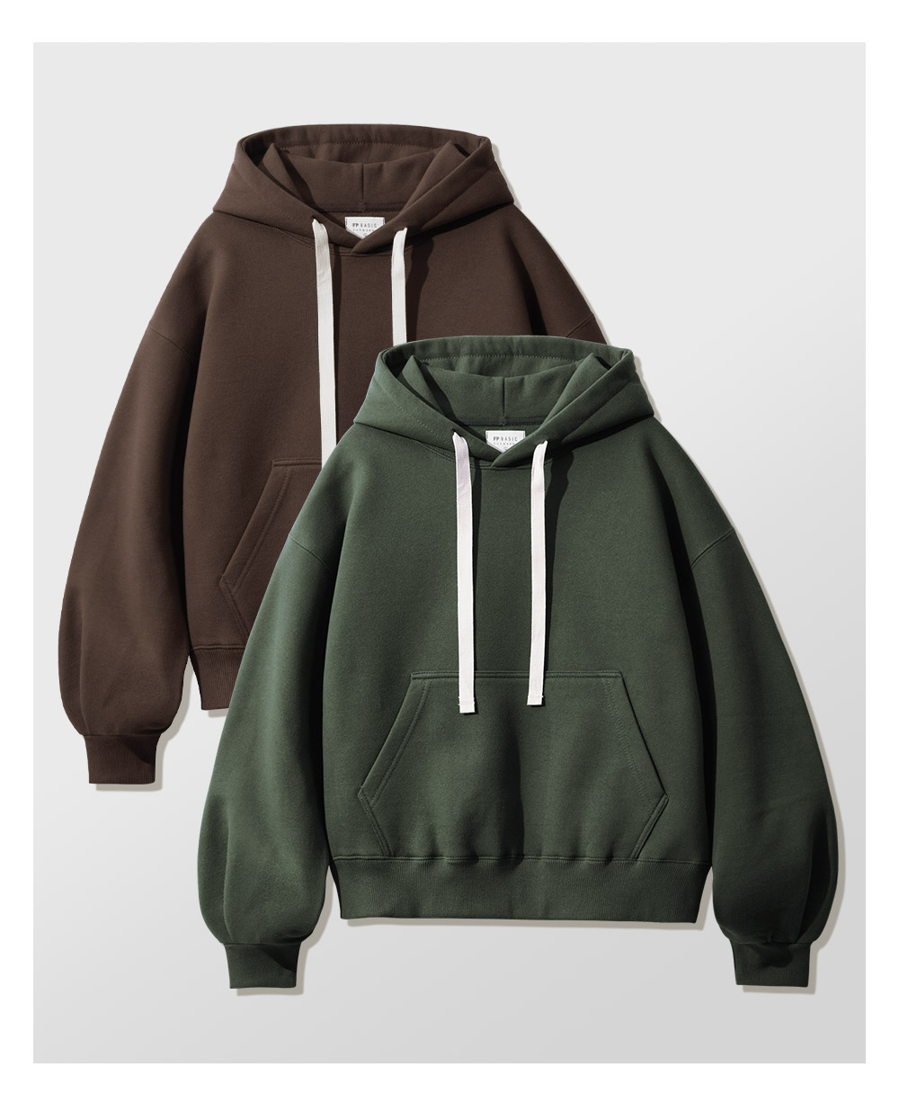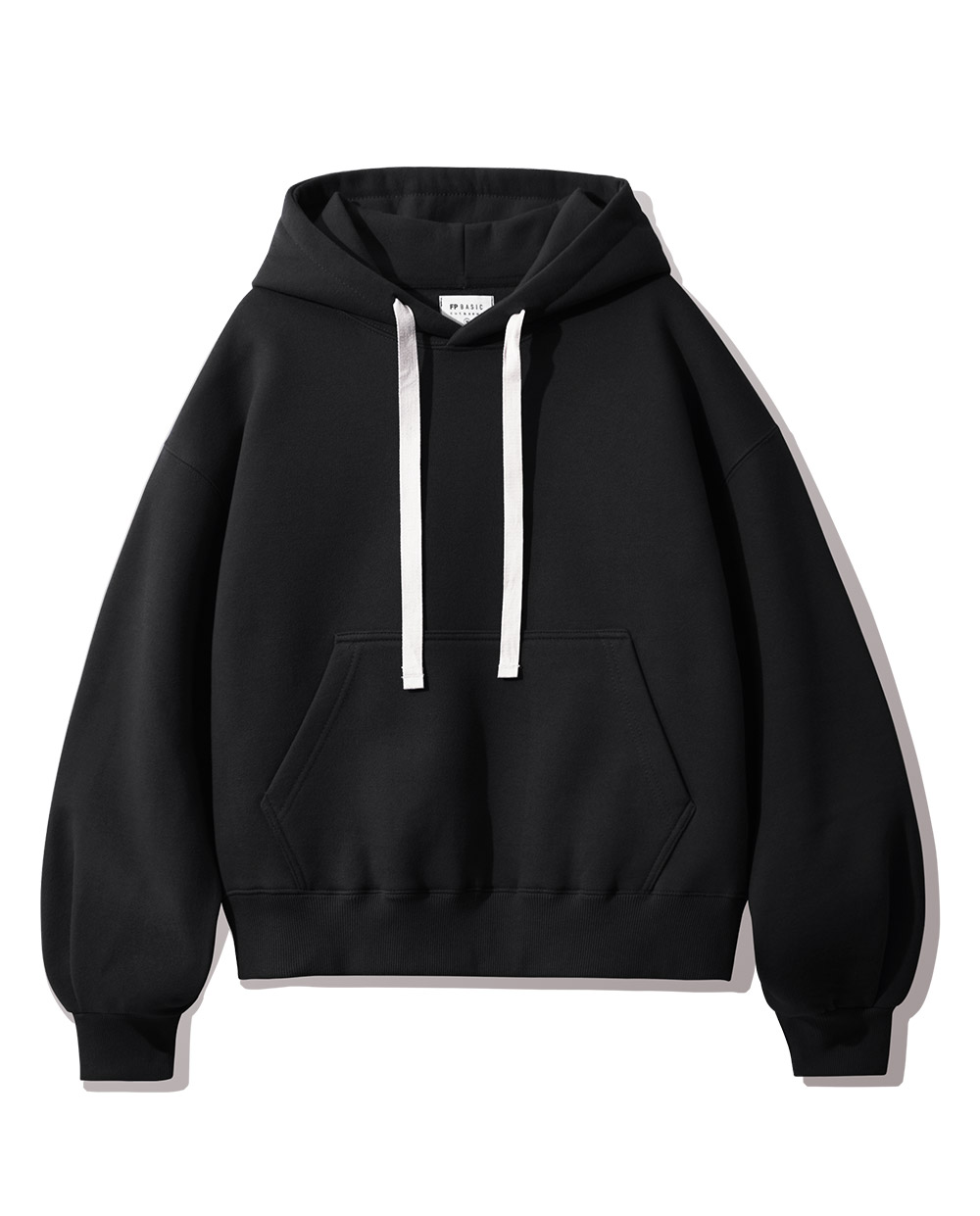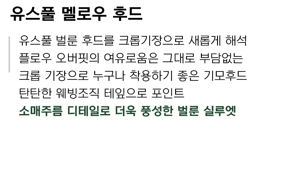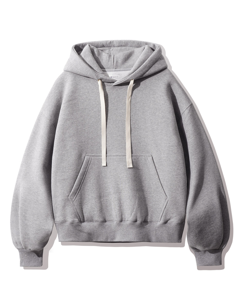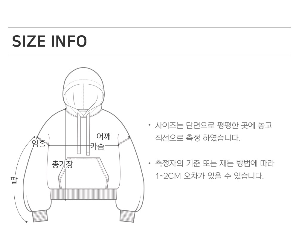 (M~2XL) 소매주름 디테일로 더욱 풍성한 벌룬핏으로 기존에 후드집업에 크롭기장으로 만든 단체 기모 후드입니다.