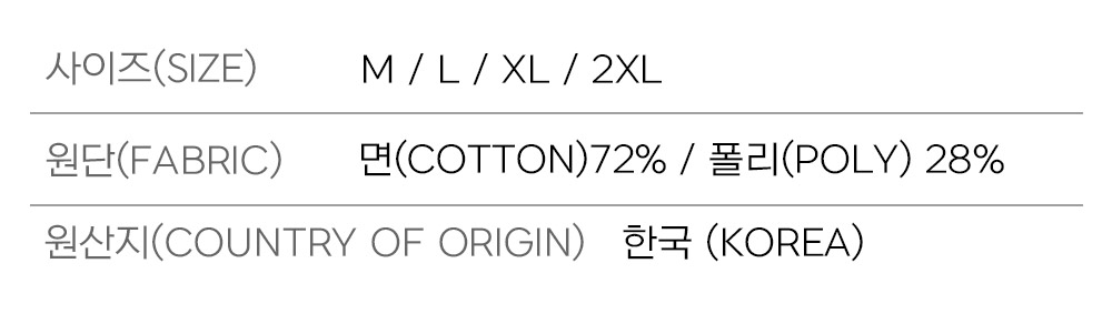 면(Cotton) 72% + 폴리 (Poly) 28%