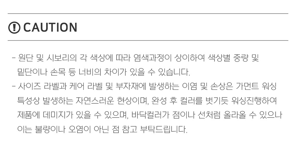 (세탁시 약간의 물빠짐이 있을 수 있으니 다른 제품과 혼용하여 세탁을 하지 않는 것이 좋습니다.)