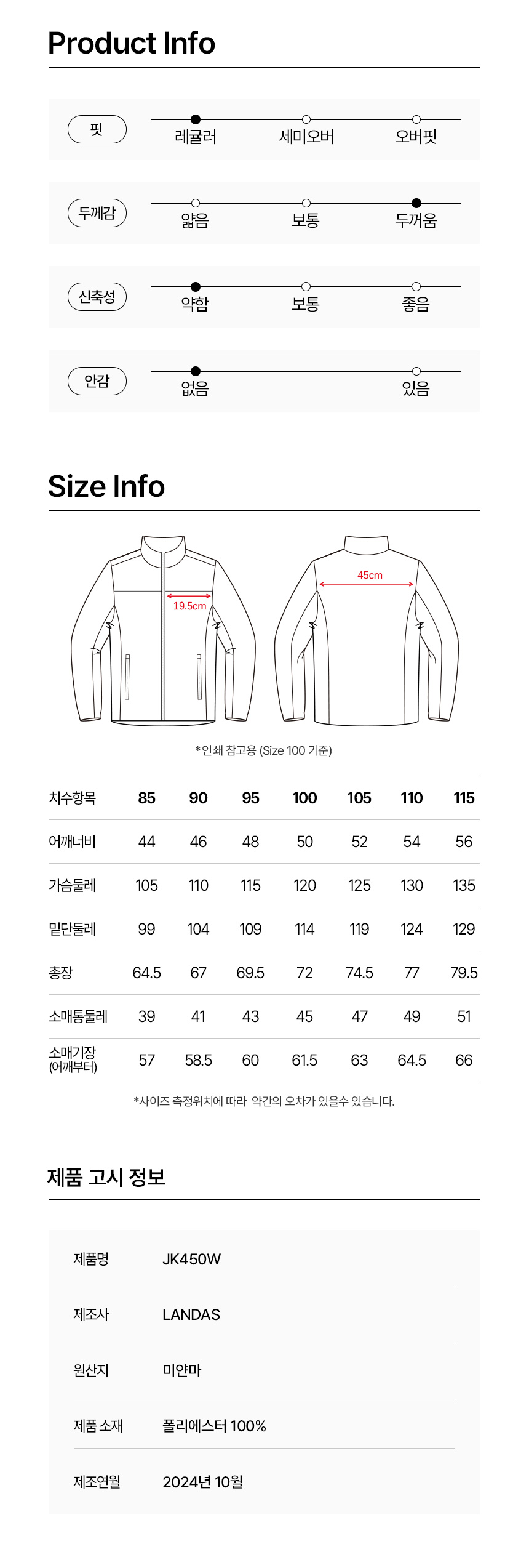 겉감:폴리에스터100% / 안감:폴리에스터100%
