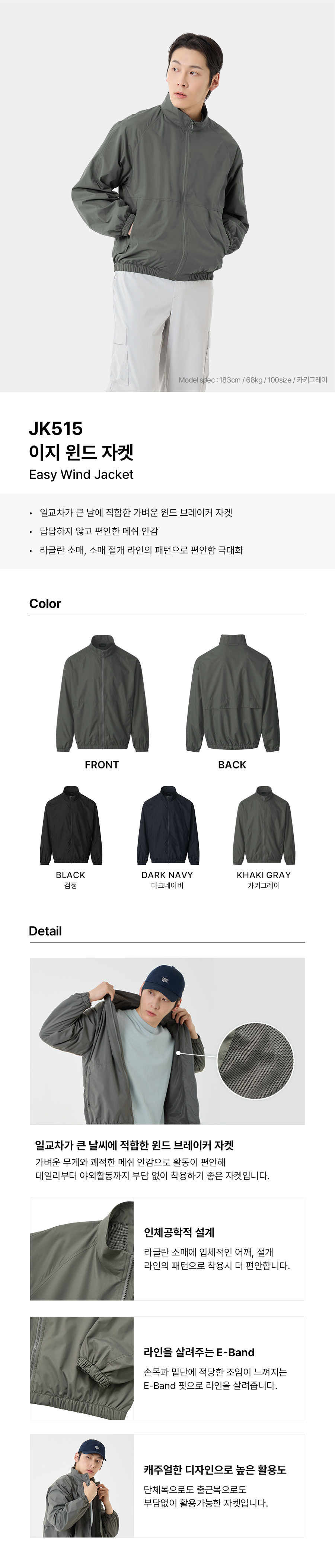 (S~4XL) 메쉬 안감으로 통기성이 졸고 일교차가 큰날에 입기좋은 데일리 윈드 자켓입니다.