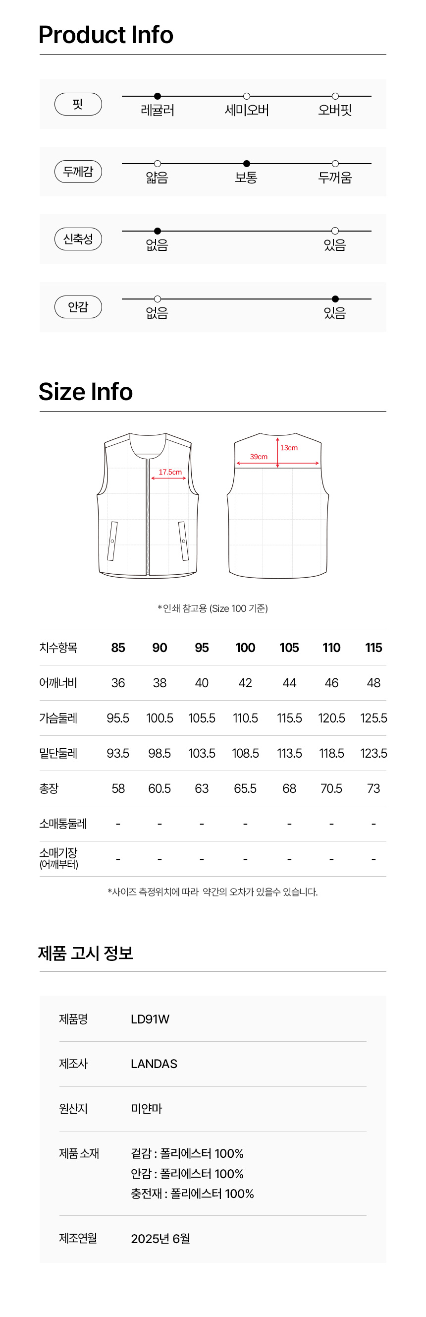 (85~115) 가볍고 포근한 소재의 퀄팅조끼로 데일리로 입기 좋은 단체조끼입니다.