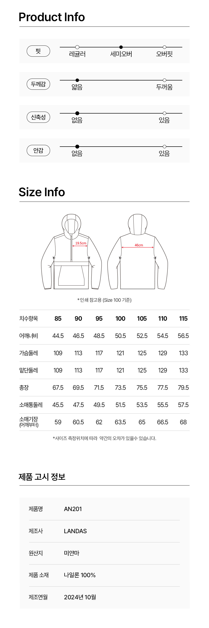 (S~4XL) 가벼운 나일론 소재와 기본에 충실한 디자인으로 가볍게 걸치기 쉬운 제품입니다.