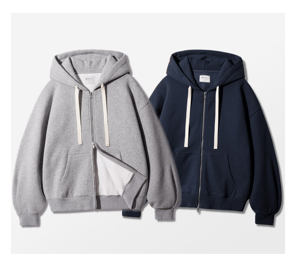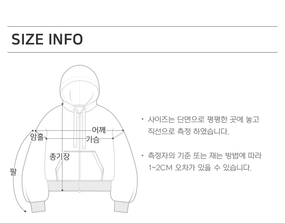 (M~2XL) 소매주름 디테일로 더욱 풍성한 벌룬핏으로 기존에 후드집업에 크롭기장으로 만든 단체 기모 후드집업입니다.