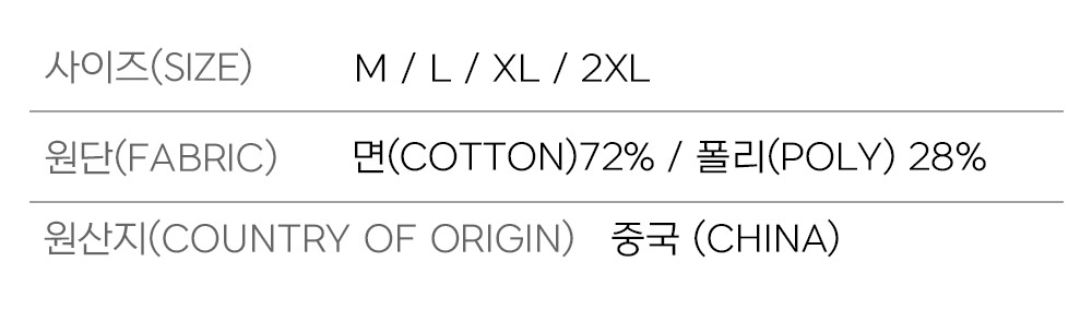 면(Cotton) 72% + 폴리 (Poly) 28%