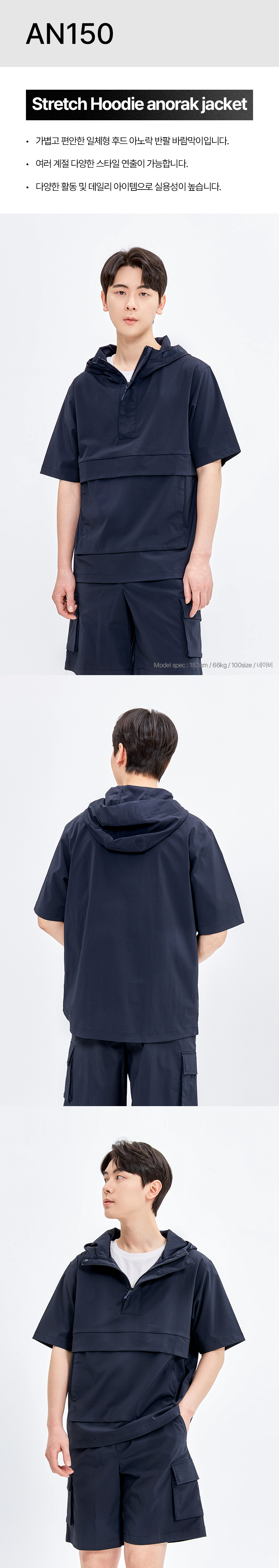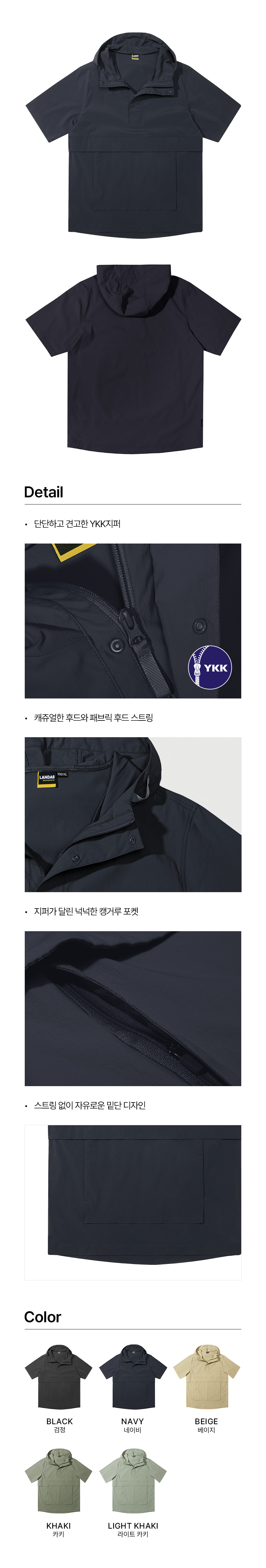 [LANDAS] 후드 일체형 반팔 아노락 자켓 5종