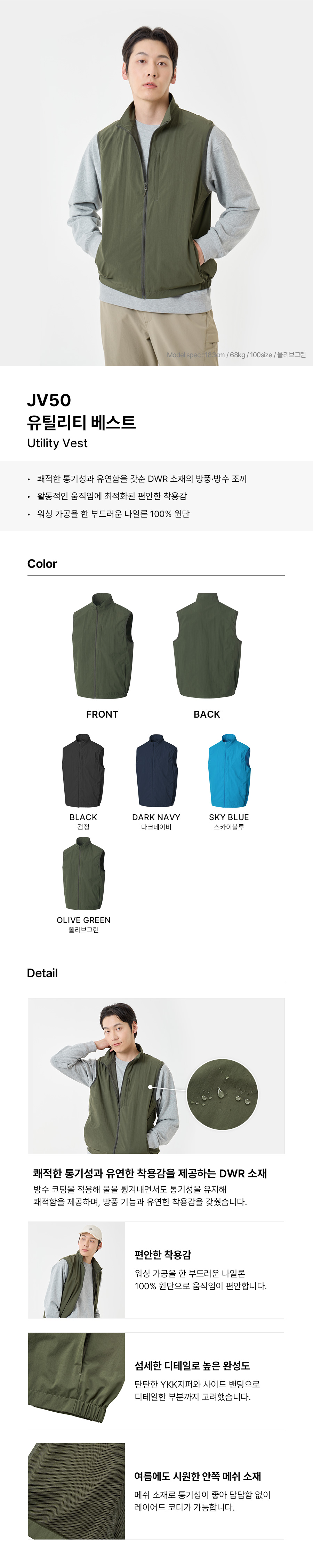 (S~4XL) 발수코팅이 되어 있으며 활동적인 움직임에도 최적화된 착용감을 느낄수 있는 26년 신상 조끼입니다.