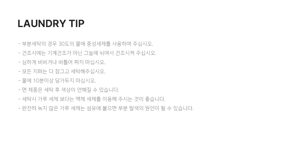 • 세탁시 단독 손세탁, 찬물세탁을 권장해 드립니다.