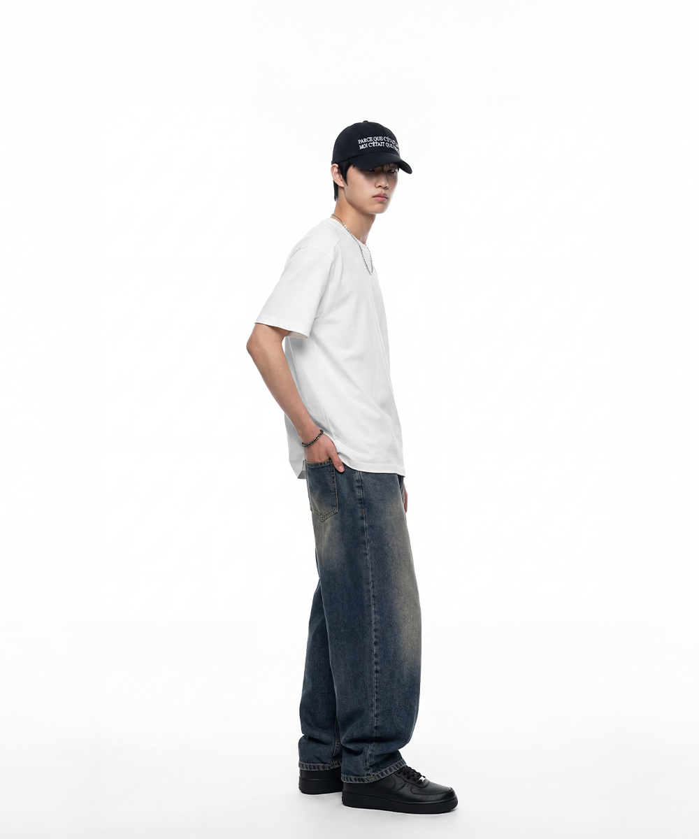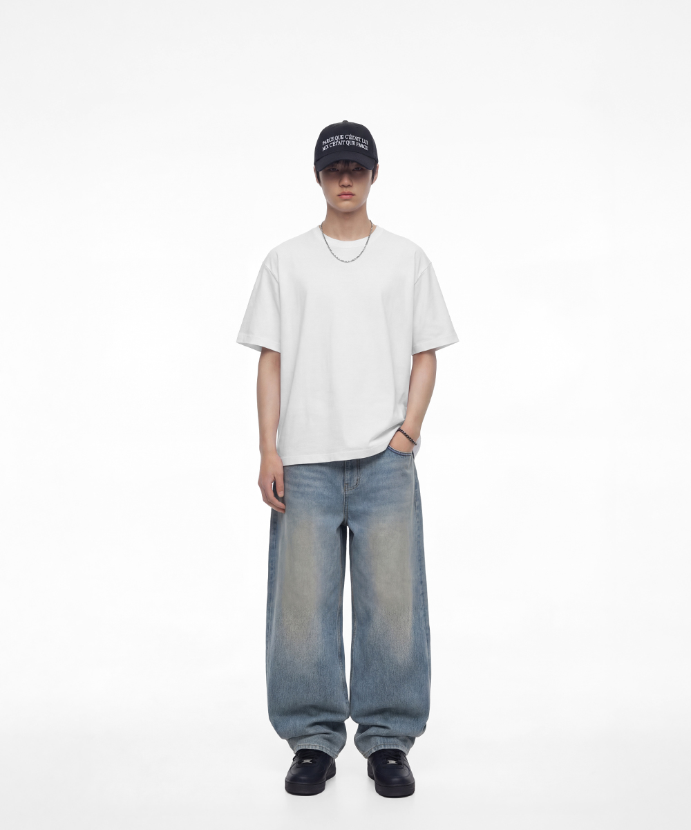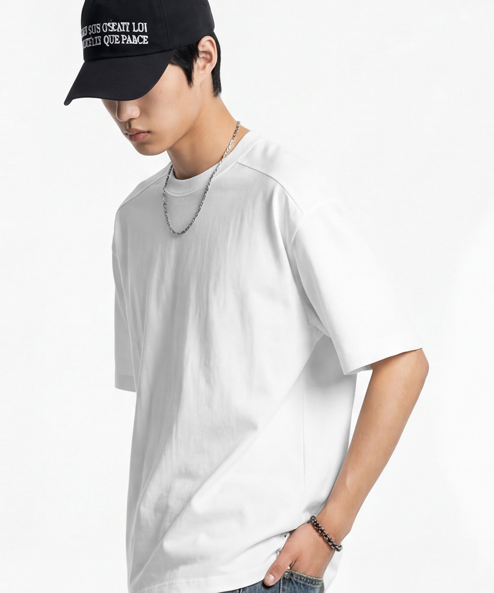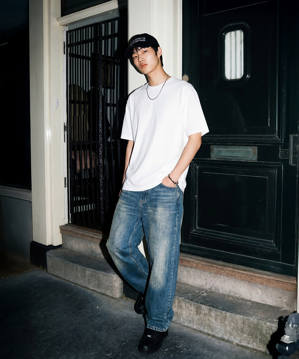 (M~2XL) 여유로운 레귤러 핏으로 입체적인 실루엣을 완성한 반팔티입니다.