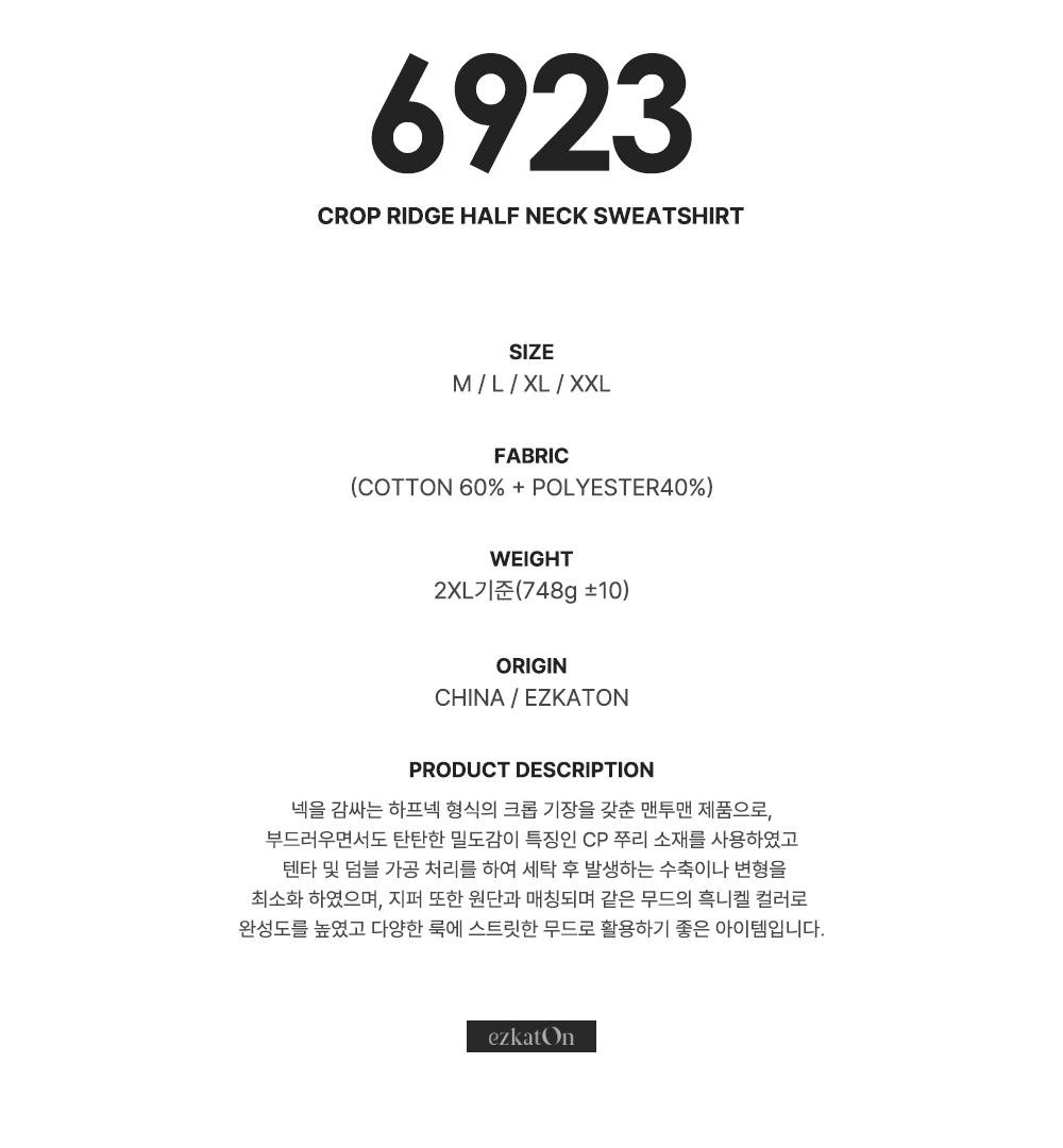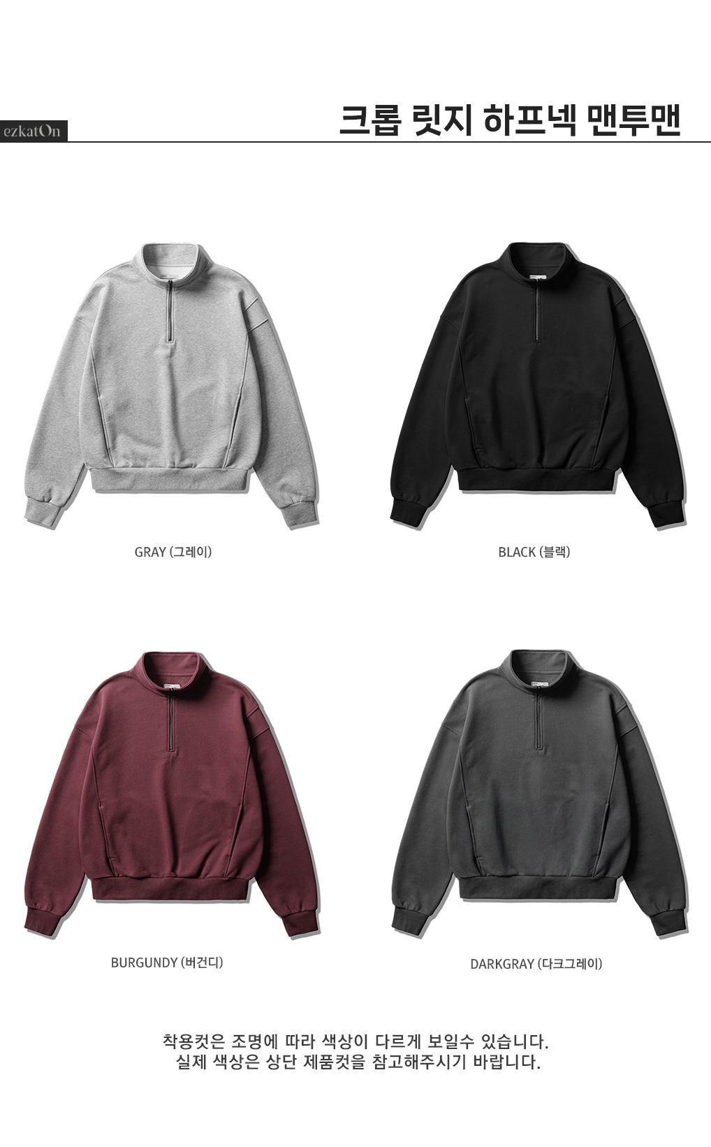 [에즈카톤] 크롭 릿지 하프넥 맨투맨 4종 (재고문의필수)