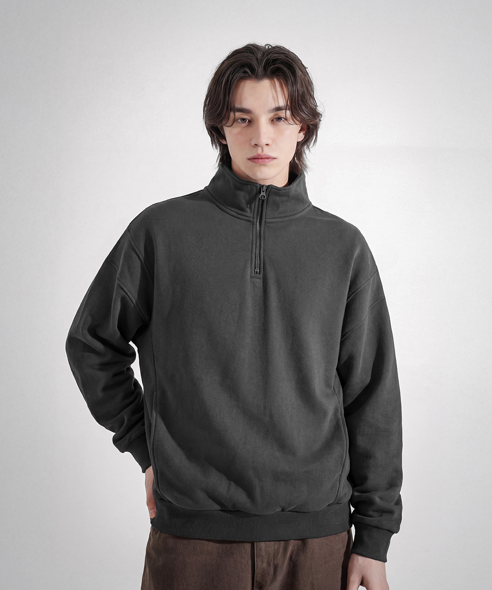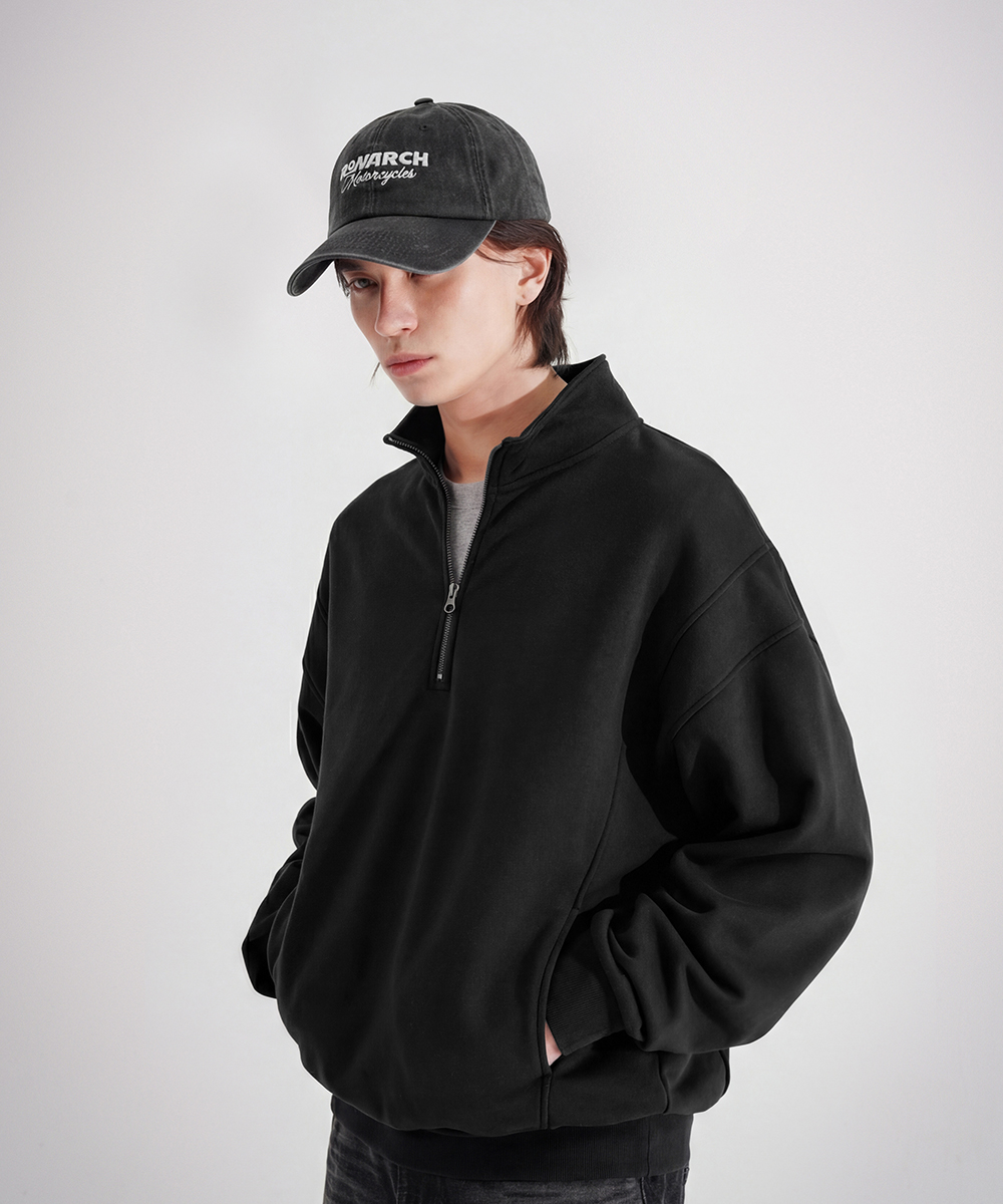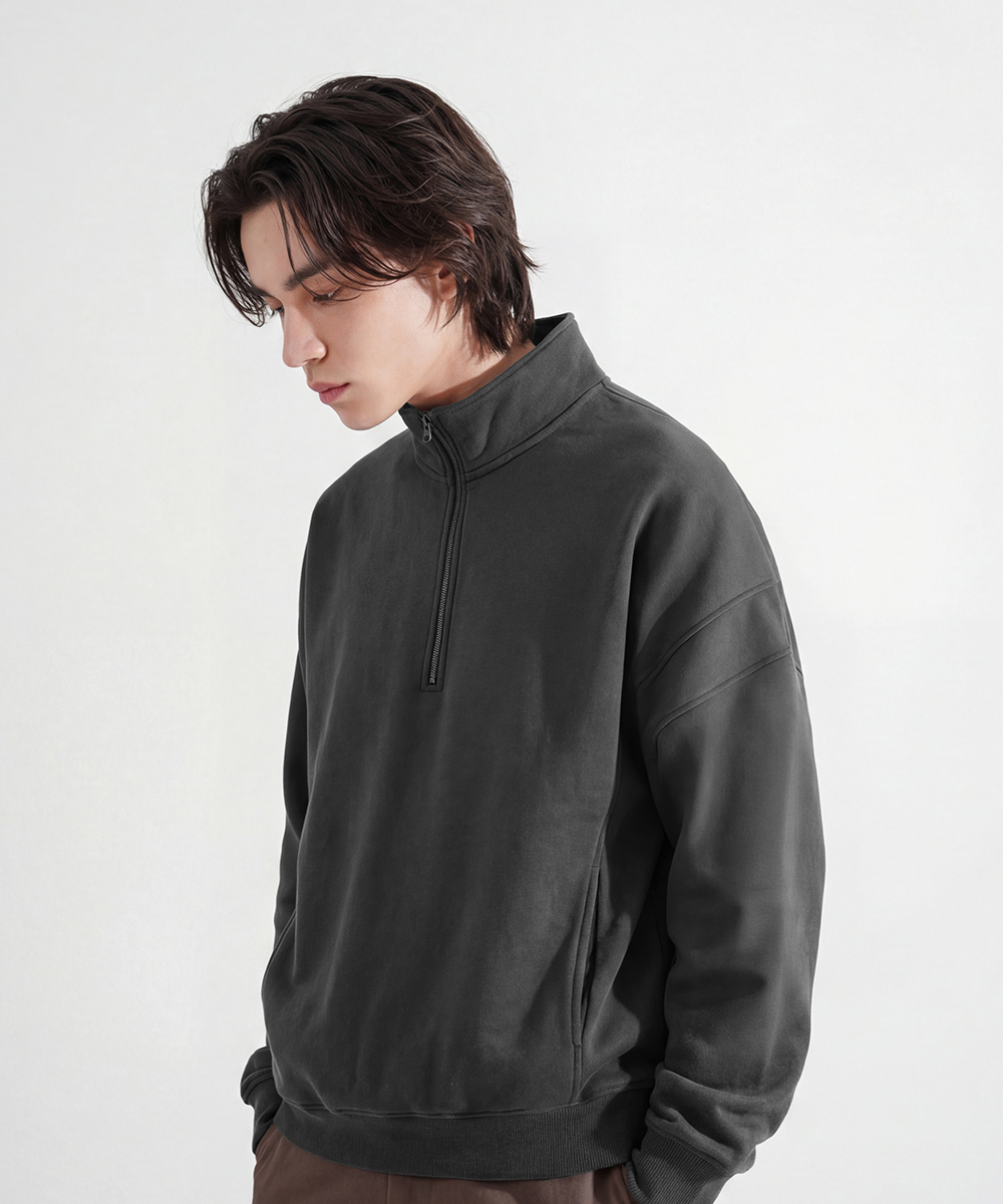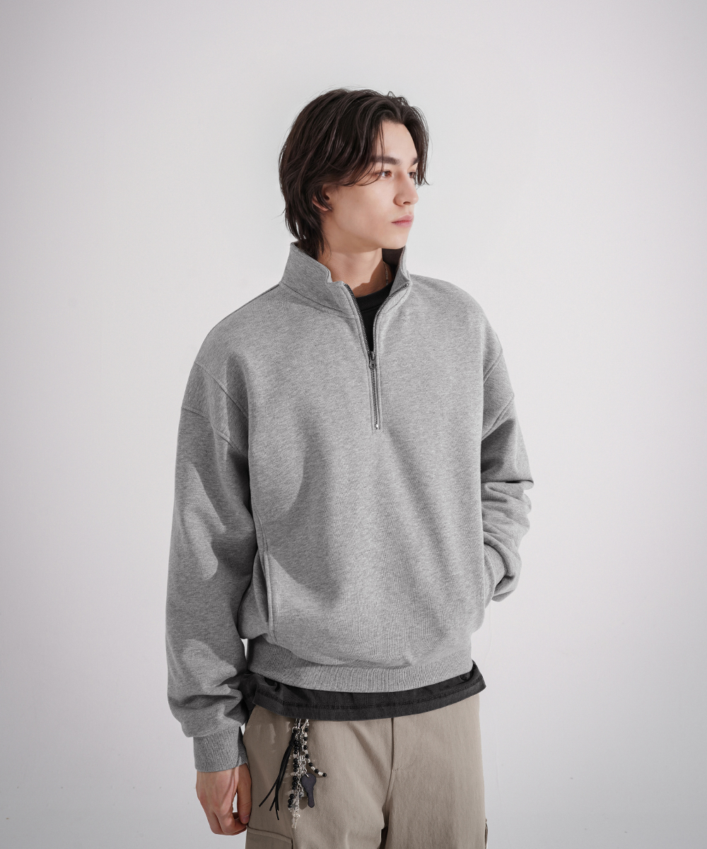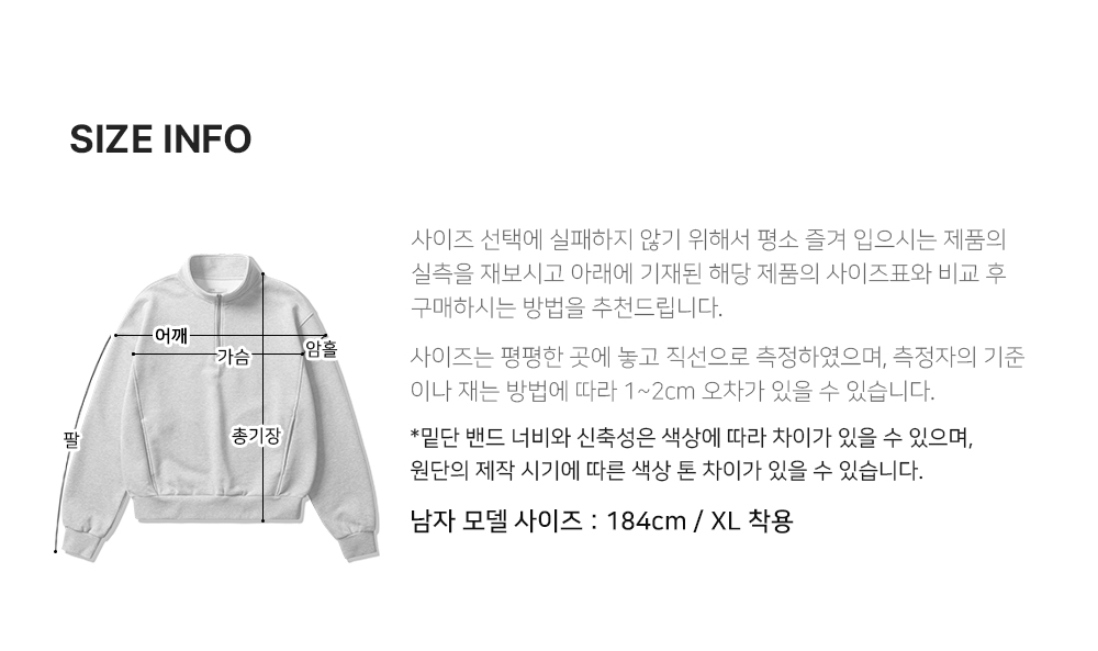 (M~2XL) 넥을 감싸는 하프넥 형태의 크롭 맨투맨으로 다양한 연출이 가능한 맨투맨입니다.