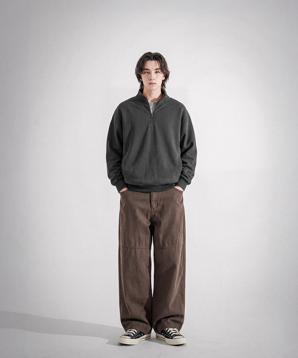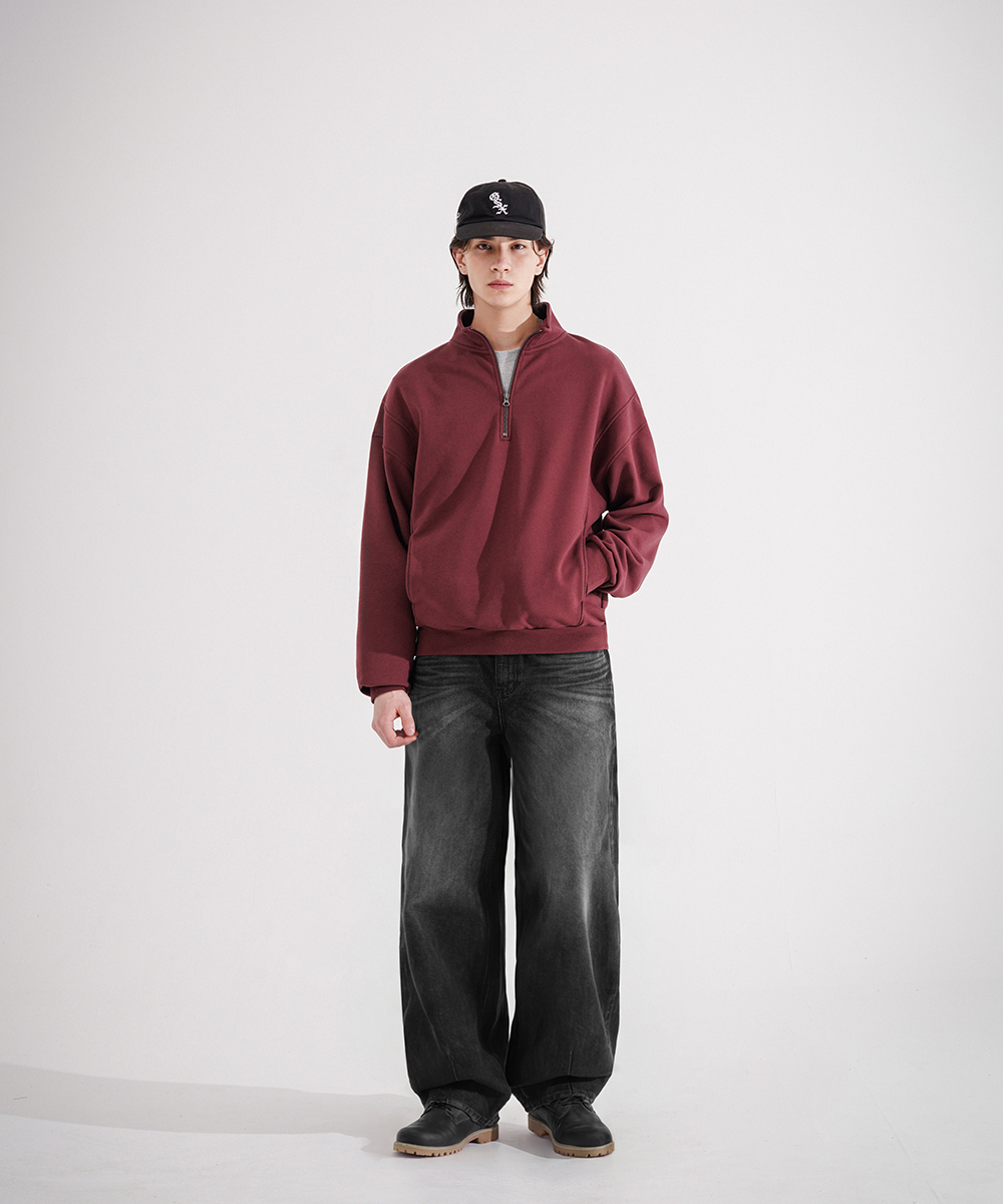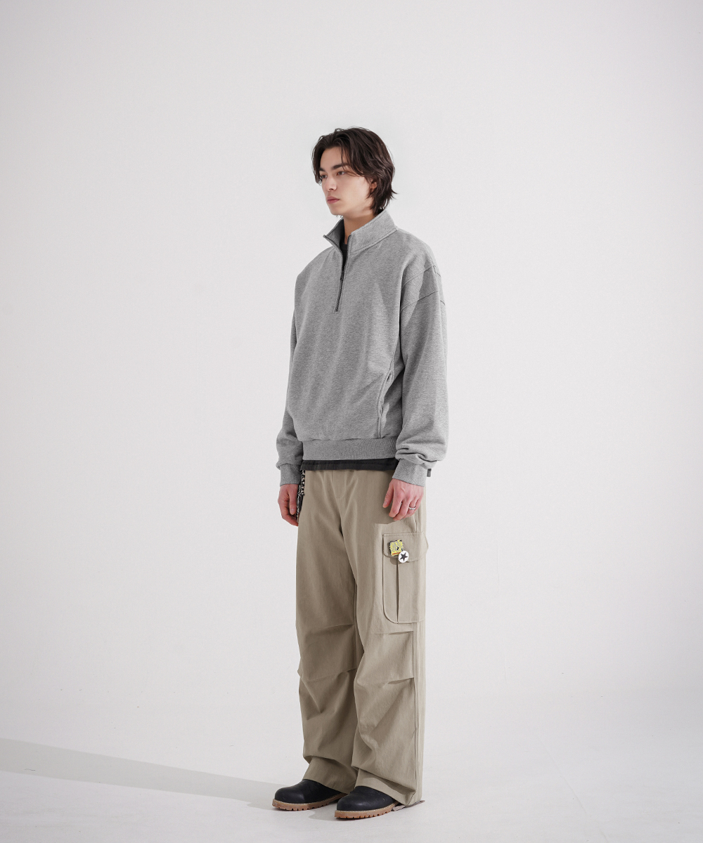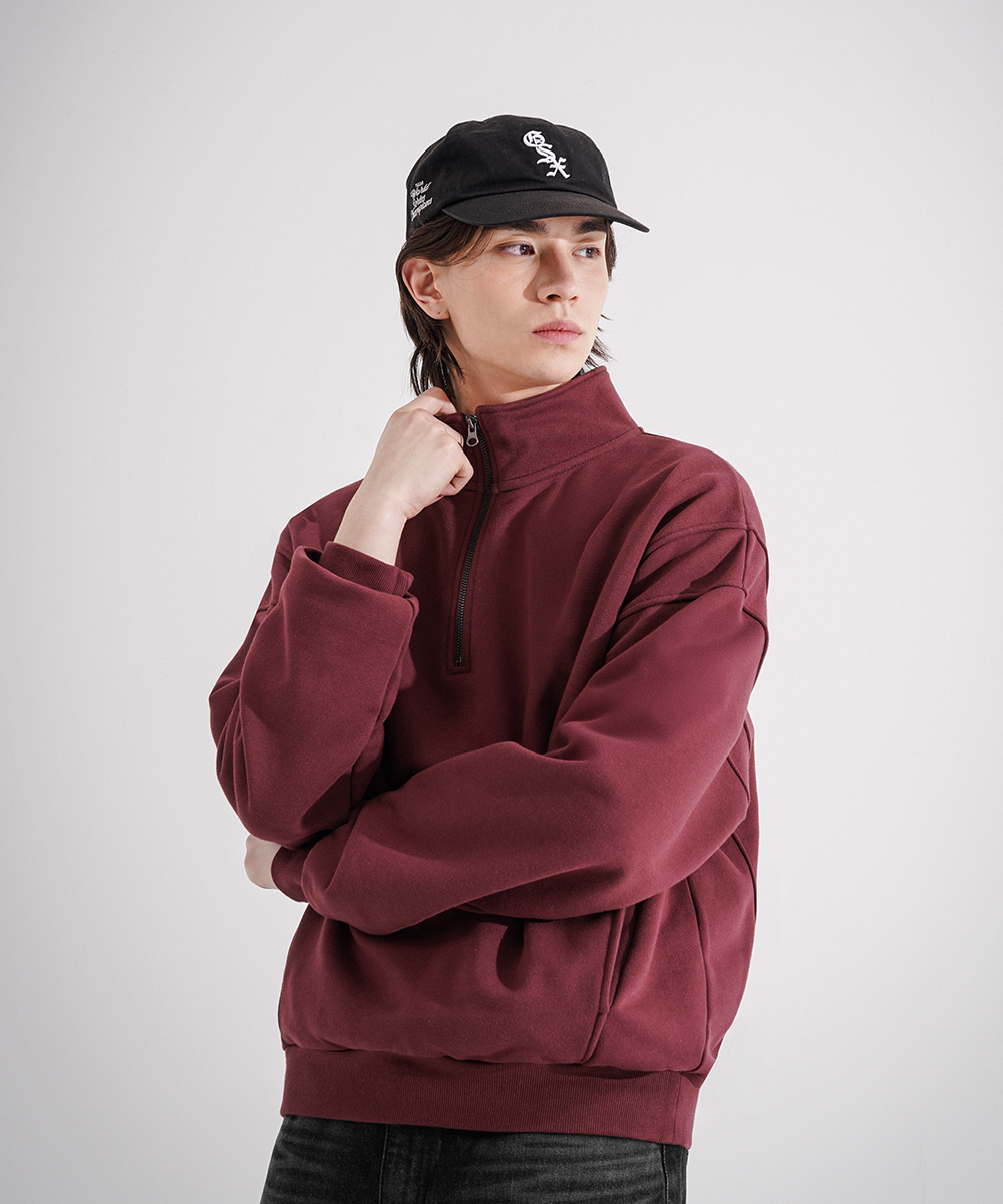 (M~2XL) 넥을 감싸는 하프넥 형태의 크롭 맨투맨으로 다양한 연출이 가능한 맨투맨입니다.