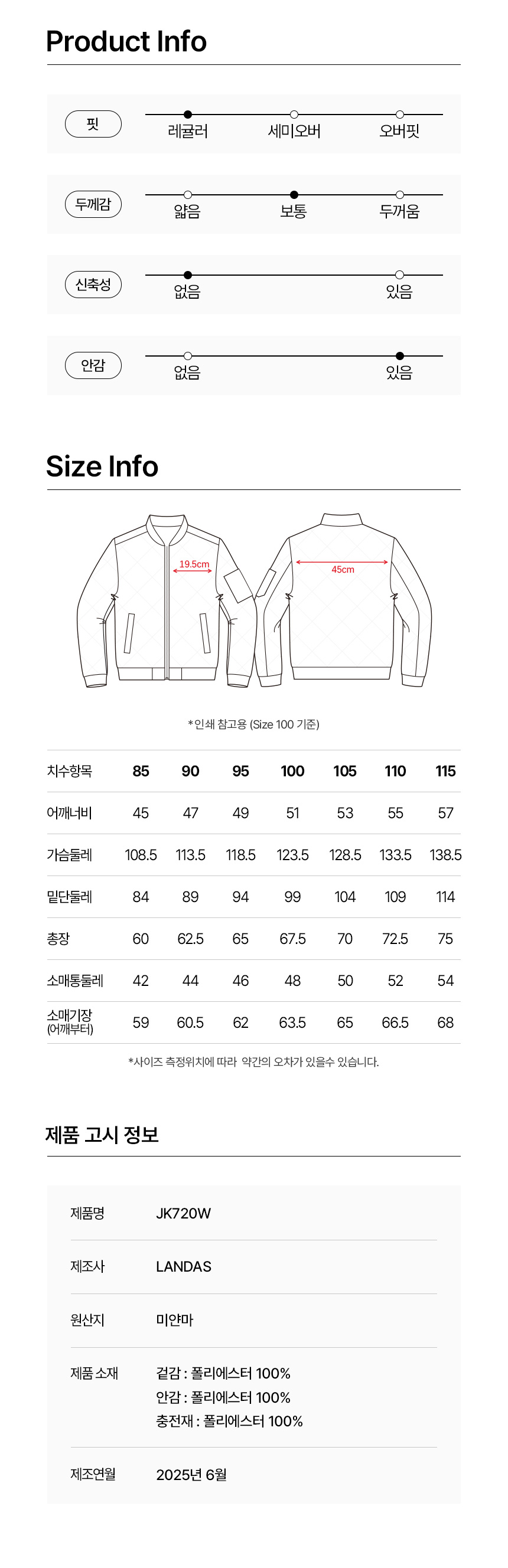 겉감:Polyester 100% / 안감:Polyester 100% / 충전재: 컴포터블