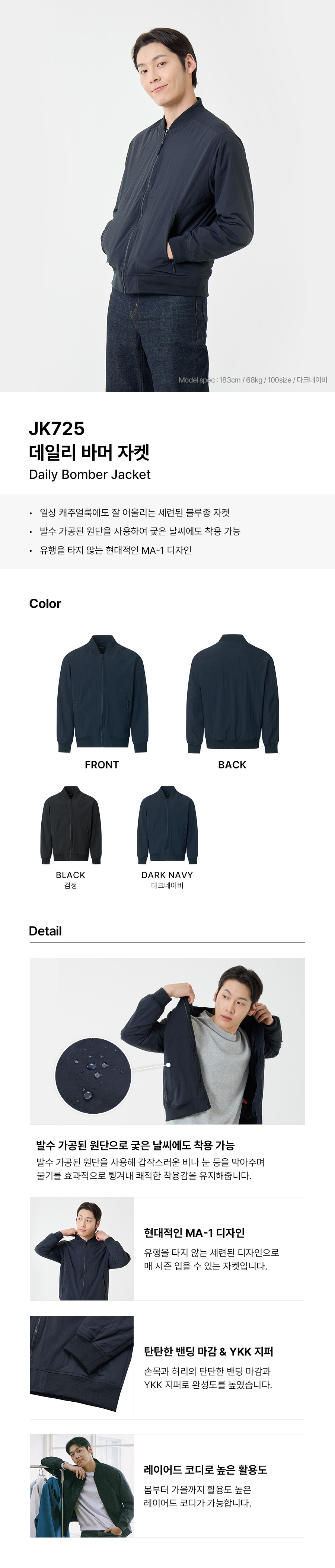 (S~4XL) 일상에서도 데일리로 입기 좋은 자켓으로 바수 가공된 원단으로 만든 MA-1 디자인인 블루종 자켓입니다.26년 신상제품입니다.