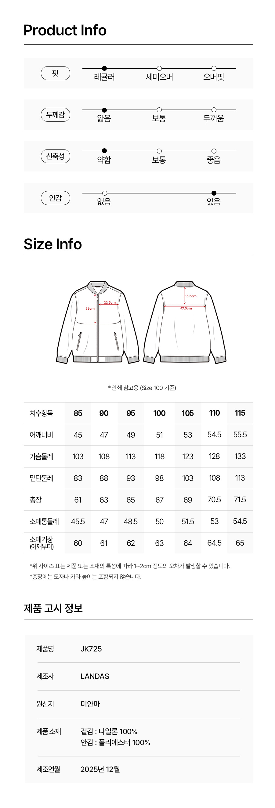 • 시중브랜드의 옷과 사이즈가 다를 수 있습니다.