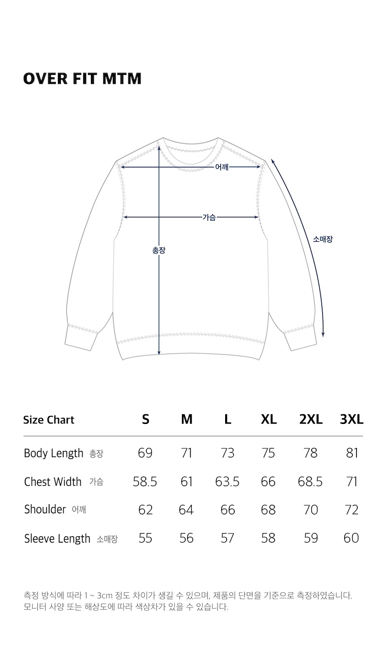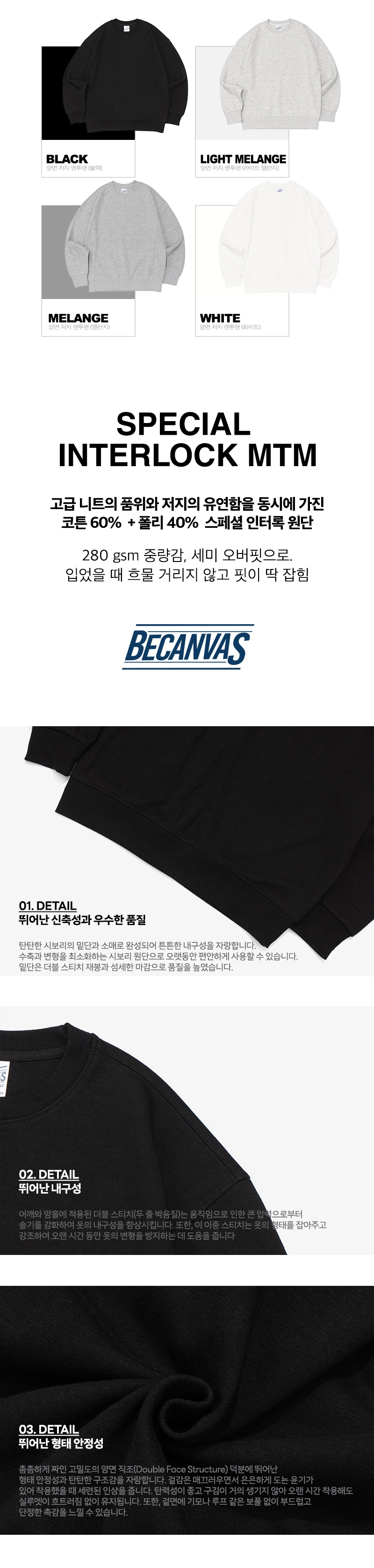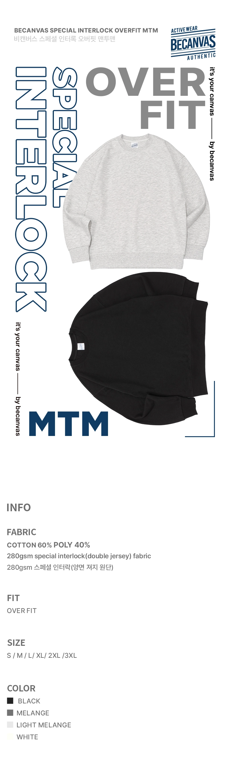 (S~3XL) 세미오버핏으로 입었을때 핏을 잡아주며 코튼 60%+폴리40%의 스페셜 인터록 원단으로 만든 맨투맨입니다.
