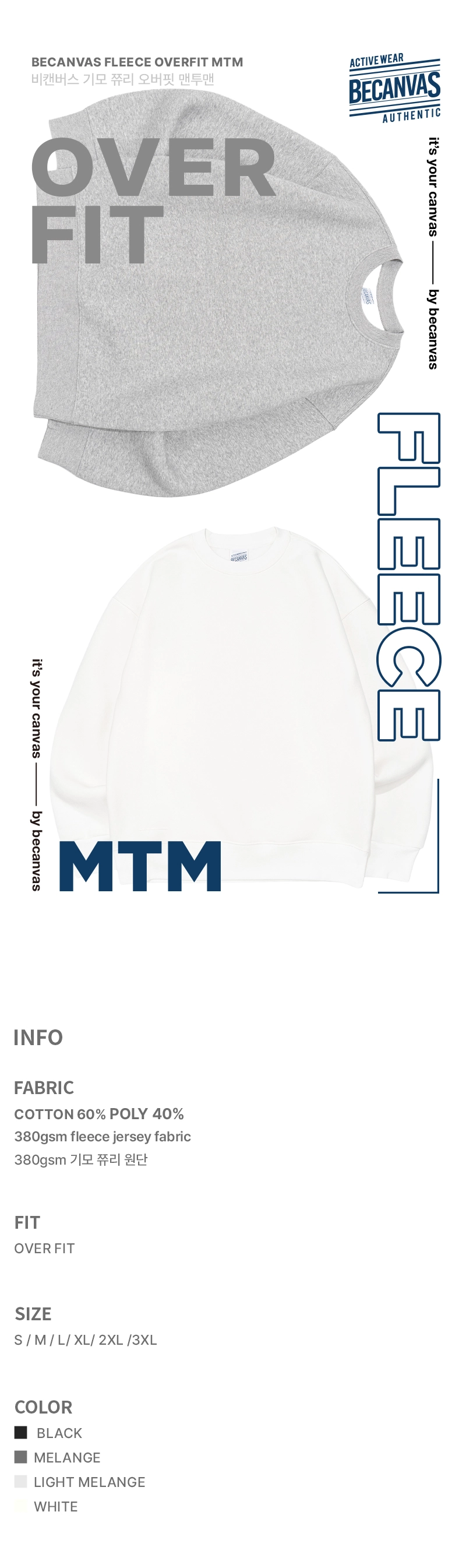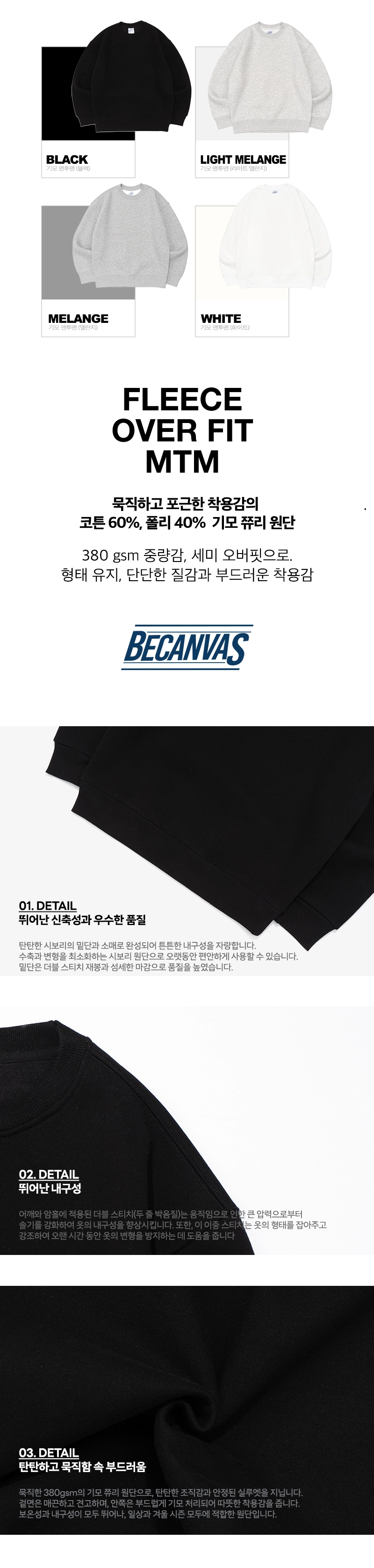 [25 F/W 비캔버스] 기모 쭈리 오버핏 맨투맨 (380g)