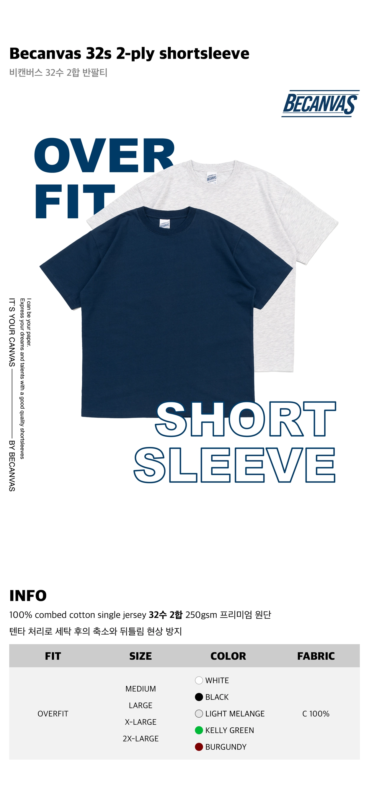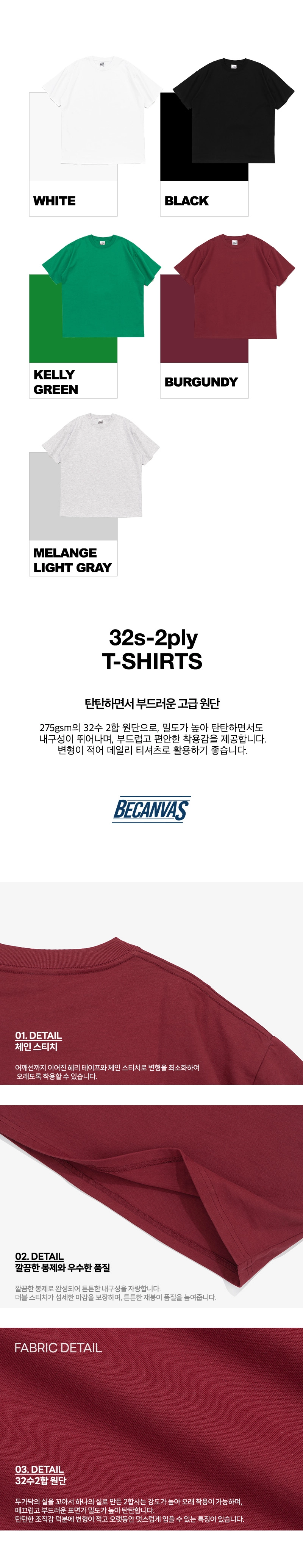 [비캔버스] 32수 2합 오버핏 라운드 반팔티 5종 (250g)